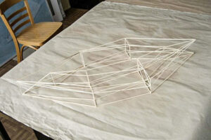 Die geplante Installation besteht aus sechs „Bienentischen“, die in einer annähernd würfelförmigen Anordnung (ca. 3 x 3 x 3 m) aufgestellt werden. Jeder Tisch hat einen Durchmesser von 60–80 cm und eine Höhe von 30–40 cm. Die Tische sind aus Altholz gefertigt und mit alten Brettern, Stöcken, Reisig, Leinen und Erde gestaltet, sodass eine strukturreiche, natürliche Oberfläche entsteht. Darauf wachsen verschiedene bienenfreundliche Pflanzen, die den Wildbienen Nahrung und Lebensraum bieten.
