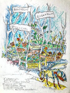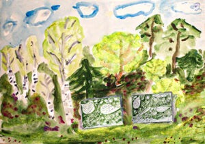 Vor der Fertigstellung ihres Kunstwerkes, zwei große Tafeln mit Poesie und Zeichnungen in Grün, Weiß und Violett (für Heidekraut), wird Annett Glöckner mehrere kleine Reisen machen und Worte sammeln kommen in Lieberose und Umgebung. Aus diesen Fundstücken wird sie Gedichte und Texte schreiben, in denen sie die Landschaft, die Bäume und die Vögel direkt anspricht und sichtbar und spürbar macht, wie diese antworten. Hallo Natur! Hallo Mensch! Ja, sie antworten, denn Annett Glöckner ist nicht nur Bildende Künstlerin sondern auch Dichterin und Performerin.