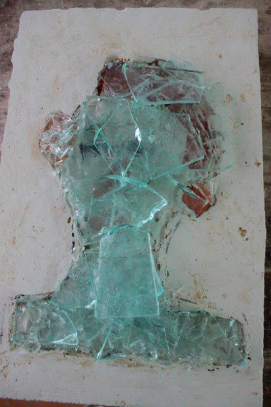 In zeitlich aufeinander folgenden Etappen haben die Teilnehmer ihr Porträt und eine Situation aus der Stadt Luckau bzw. aus ihrem Alltagsleben dargestellt. In einer ersten Aktion wurden die eigenen Porträts gezeichnet, dann mit viel Spaß und weichem Lehm zu einem Relief modelliert, das mit Gips übergossen wurde. Als dieser fest war, wurde der Ton aus der Gipsform entfernt. Zurück blieb eine Hohlform. In deren Vertiefungen wurde später mit einem trockenen Pinsel feiner Glasfarbenstaub für die Markierung von Haaren, Nase, Mund und Augen verteilt. In einer nächsten Phase wurde mit einem Petroleum getränkten Glasschneider dickes Fensterglas geritzt und gebrochen. Anschließend wurden die einzelnen Stücke in Handtücher gewickelt und mit heftigen Hammerschlägen zerkleinert. Der so entstandene Glasbruch wurde nun randvoll in die Hohlform geschichtet. Nach mehreren Korrekturen konnten die mit Glasstücken gefüllten Gipsformen in den Brennofen gebracht werden. Der 24stündige Brennvorgang bis zu einer Temperatur von ca. 845 Grad und die notwendige Auskühlungsphase entwickelte sich zur Geduldsprobe für die kleinen Gestalter. Um so überraschter waren sie am nächsten Tag, als sie das Ergebnis stolz in den Händen hielten. In Windeseile wurden die Gipsreste von den gläsernen Porträts getrennt, bevor sich alle zum selbst zubereiteten Essen um das Feuer im Hof versammelten. Anstelle einer Nachspeise griff Schulleiterin Gerlinde Sander, die das Projekt gemeinsam mit Beate Bolender entwickelt und betreut hat, zur Gitarre und es wurde gemeinsam gesungen.